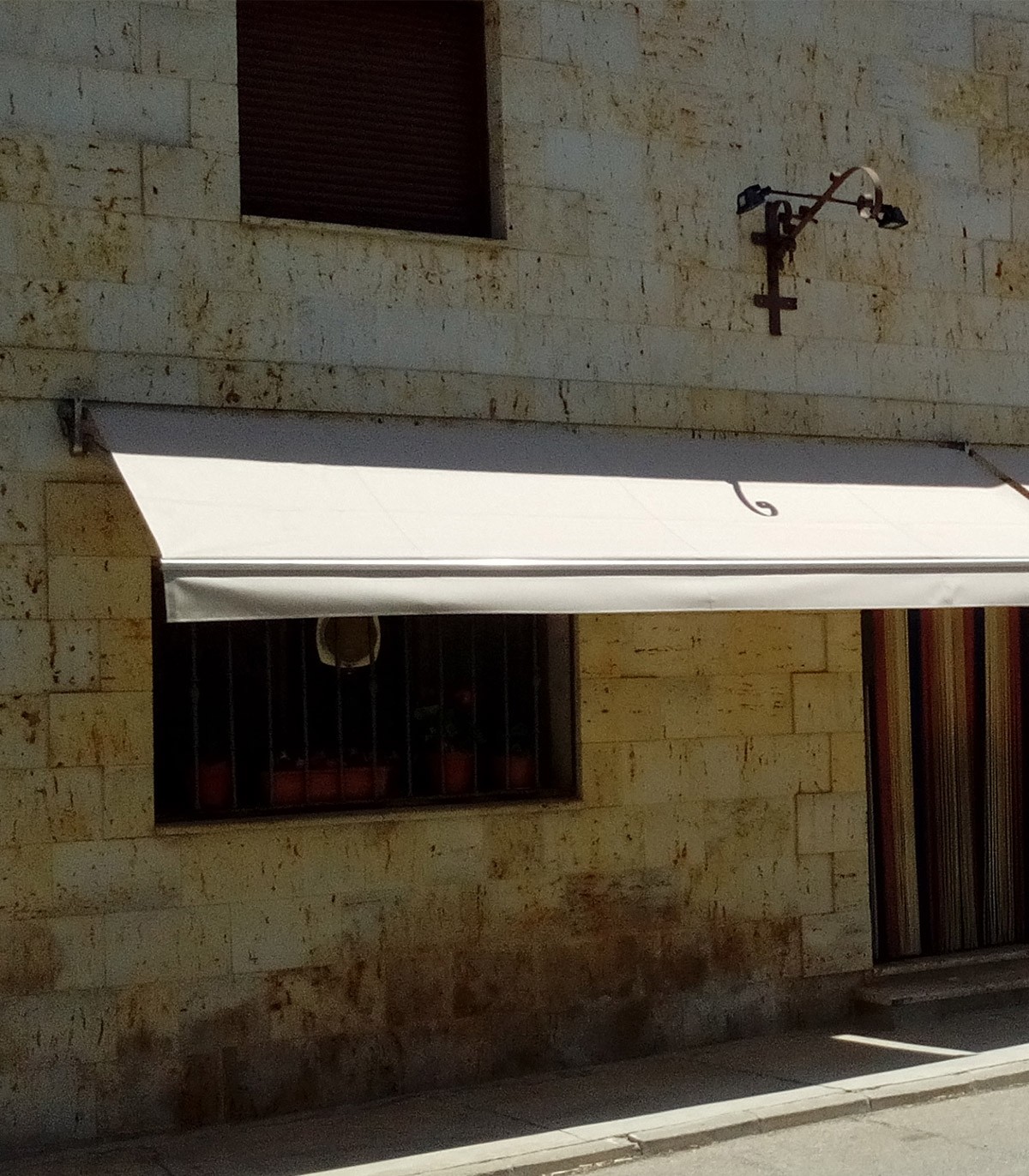 Las medidas necesaria para la fabricación de nuestros toldos son línea y salida. La salida coincide con la medida del brazo del toldo.